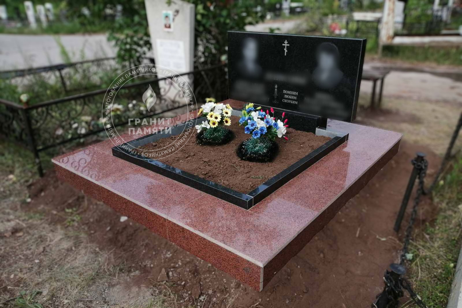 / Двойной гранитный памятник, прямой
